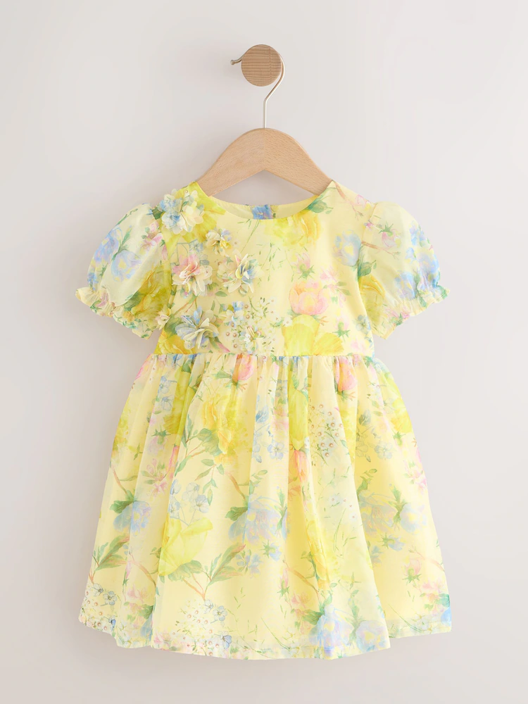 Make her feel like royalty in this beautiful Flower Corsage Dress, an ideal outfit for flower girls and special events. The bodice features a pretty 3D flower detail, adding a delicate, charming texture. For comfort and ease, the dress is fully lined and secured with practical buttons at the back, creating a timeless and elegant look. Beautiful outfit for flower girls Pretty 3D flower detail on the bodice Buttons at the back fully lined Main 100% Recycled polyester. Lining 100% Cotton.